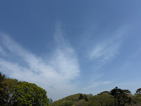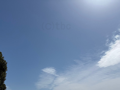 ひつじ雲(高積雲)や、うね雲(層積雲)多め。昼過ぎもまだ晴れている。