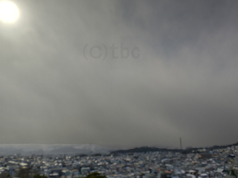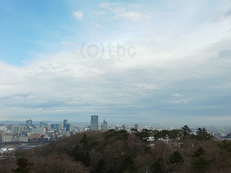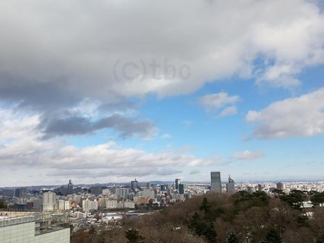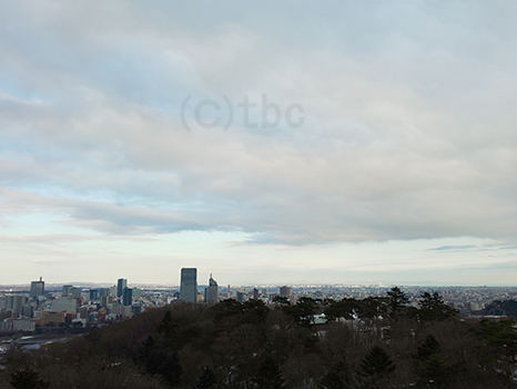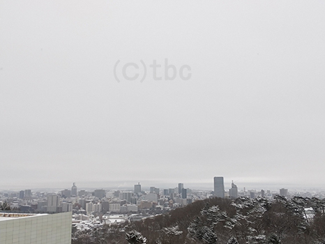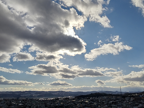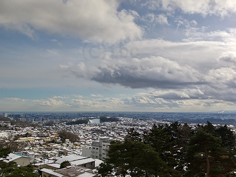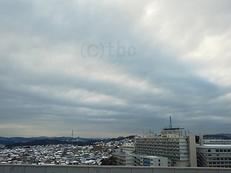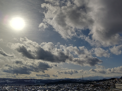 山の方にはびっしり雪雲が広がっているが、市街地は日差しが十分に差し込んでいる。