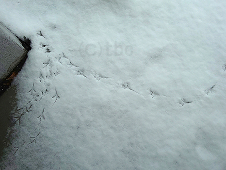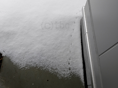雪が降っている間、鳥も屋根下に避難をしたかったのか、足跡がくっきり。