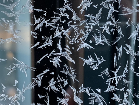 昨夜外に出しておいた薄いプラスチック板には、霜が。白い羽の様だ。