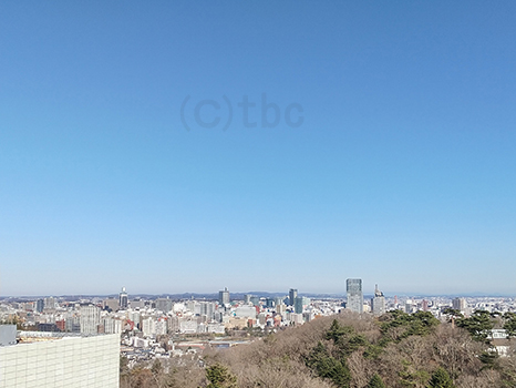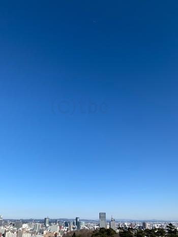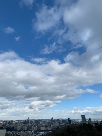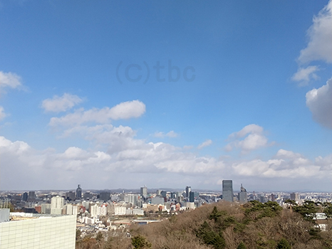 仙台市中心部はすっきりと青空。日差しは十分だがとにかく寒い。