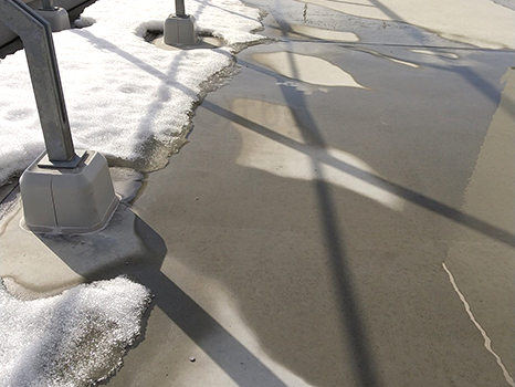 朝は積もっていた屋上の雪は、日光に当てられて、だいぶ解けてきた。