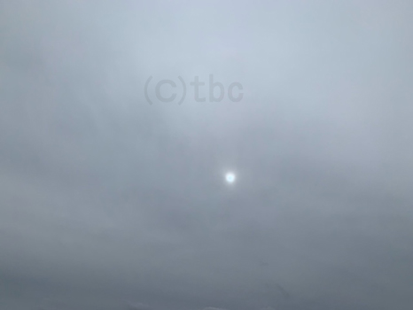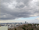 朝は広く雨が降った。この時間は雲に覆われている。風が強く、気温ほどの暖かさはない。