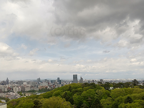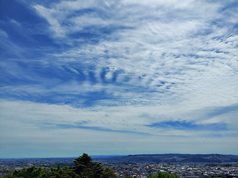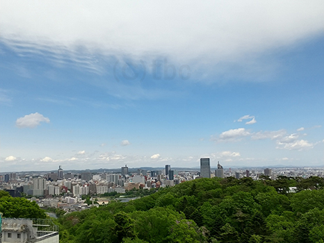 仙台市内、午前よりも雲が多い。20度を超えていて長袖では少し暑く感じる。