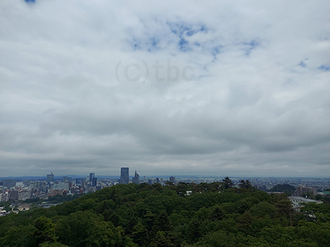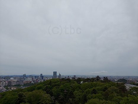 一方でわずかに日差しもあり、よく見ると若林区方面の建物の屋根が光っている。