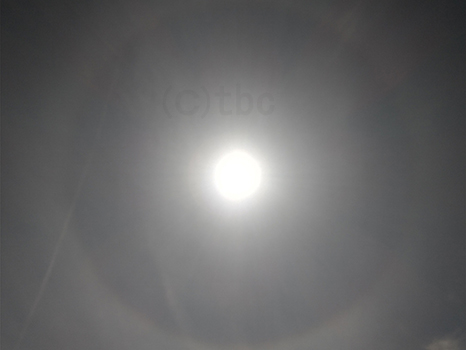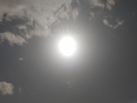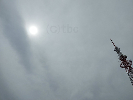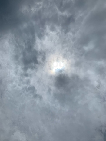 太陽が薄い雲に透けて見える。蒸し暑く感じる。