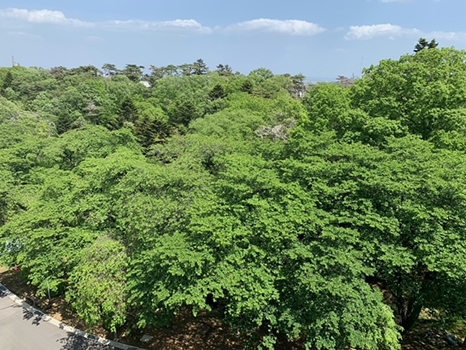 みどりの日、tbc構内の新緑がまぶしく輝いている。