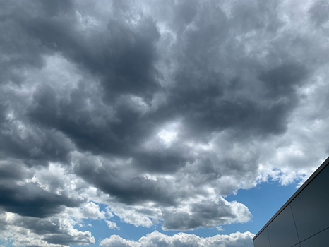西の空は、通り雨をもたらしそうな雲もあるが、雲は隙間が多くなっている。