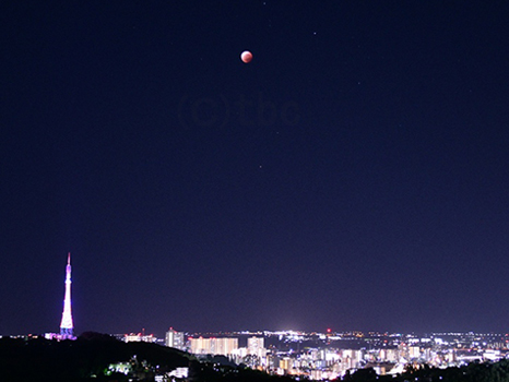 なんとか晴れて皆既月食がみられた!仙台の夜景とともに。。。