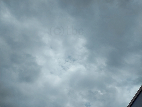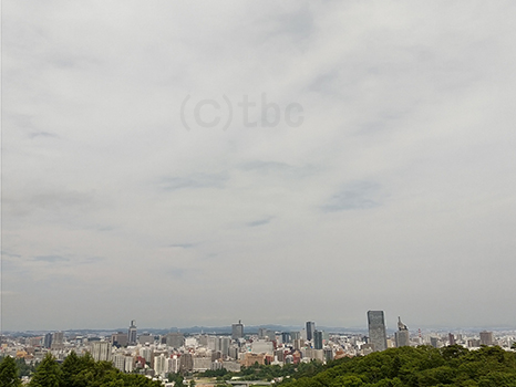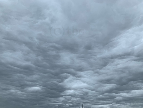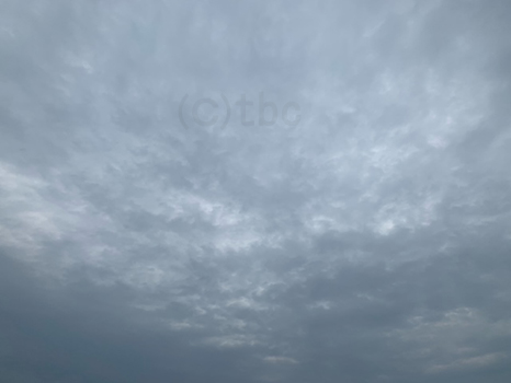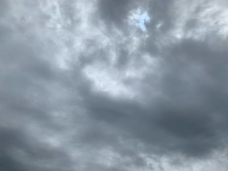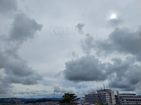 灰色の雲に覆われているが、所々晴れ間も見えている。