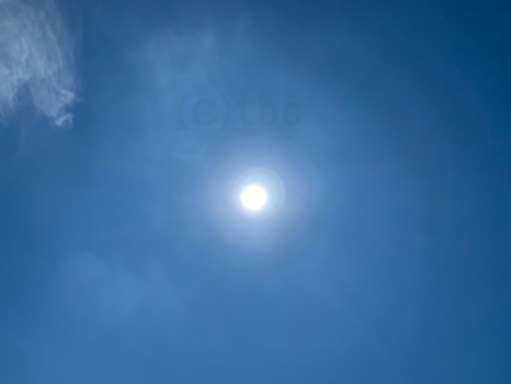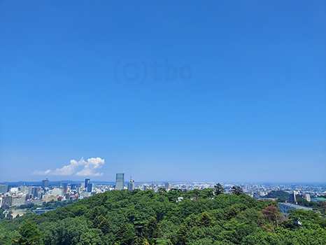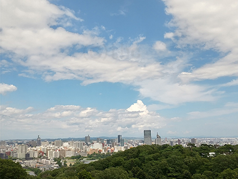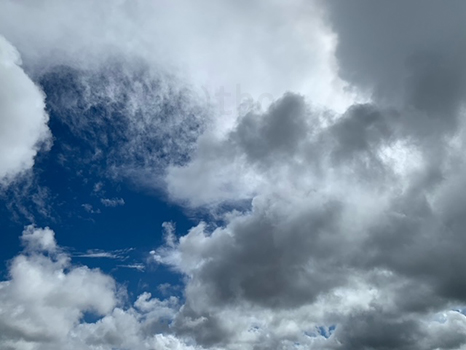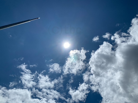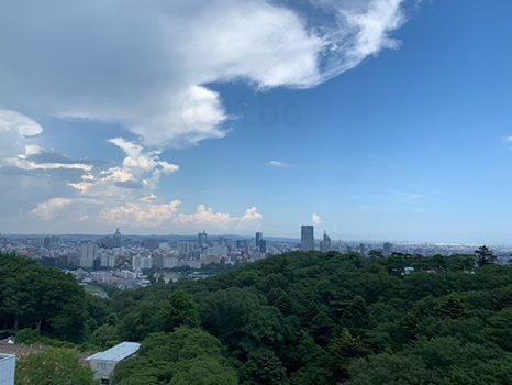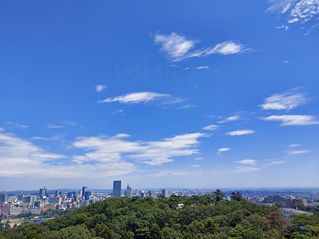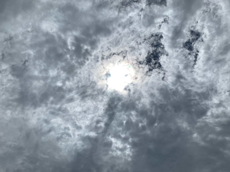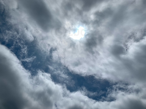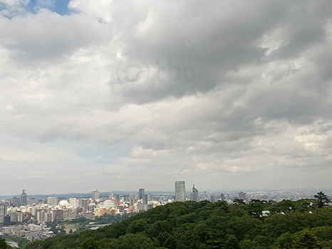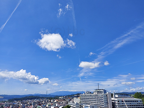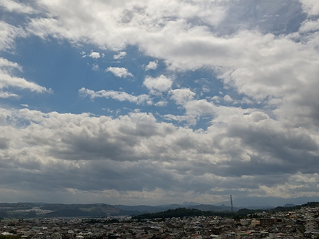 空全体に雲が広がっているが、わずかに青空もみられる。気温が大きく上がり、厳しい暑さ。
