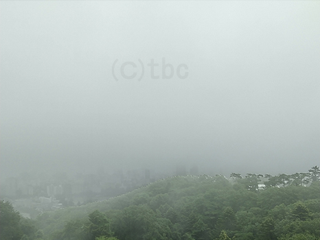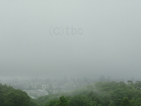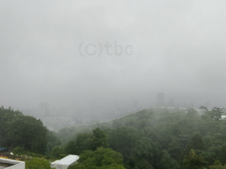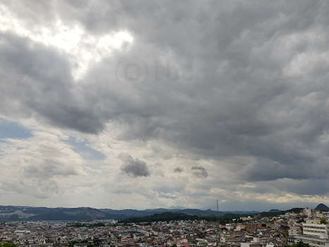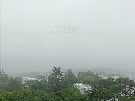 本来なら、この時期、山の方にはもくもくと雲の峰がみられるところが、まるで梅雨時のような空の色合い。