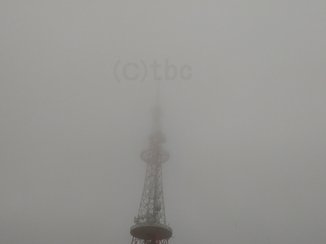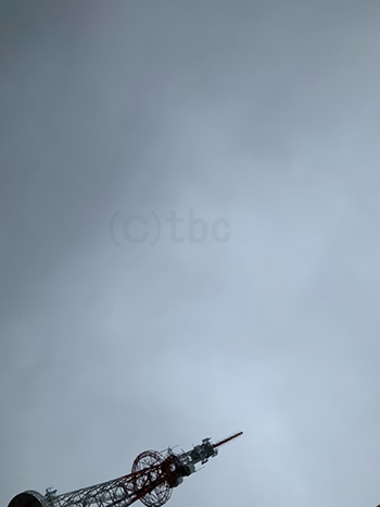 低く雲が垂れ込め、鉄塔の上の方は霞んでいる。