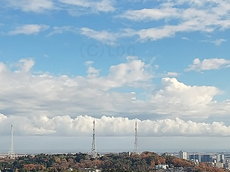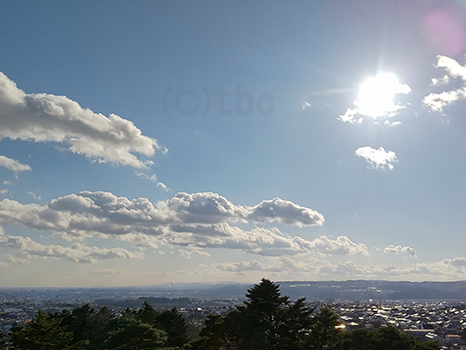 青空も大きく広がっているが、太陽のある方角に雲があるため、日差しはない。 寒気が弱まり、上着がなくても寒くない。