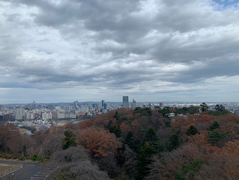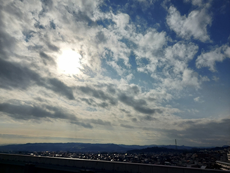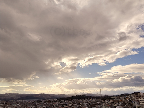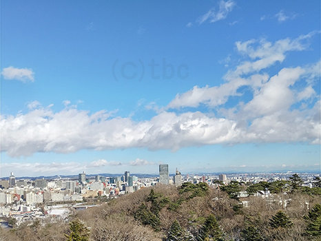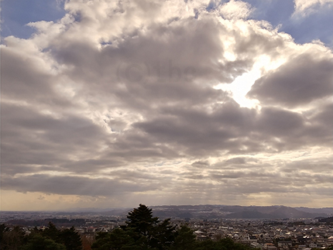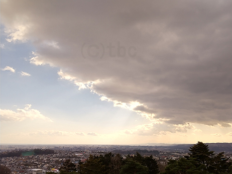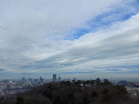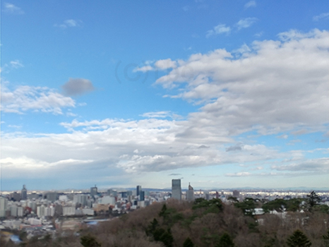 朝は雪が降っていた仙台市内だが、昼過ぎには東の空はすっきり青空に。