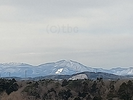 きのうまでの雪で、山は冬らしい白い景色が広がっている。