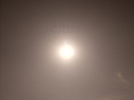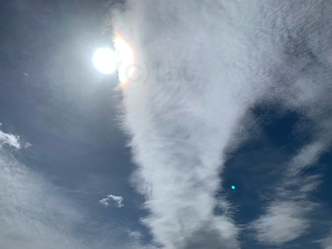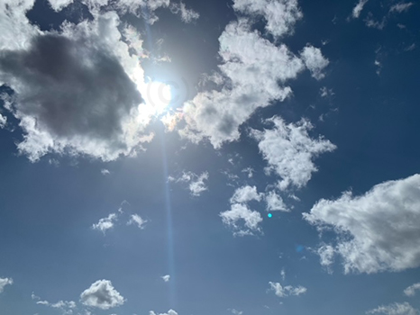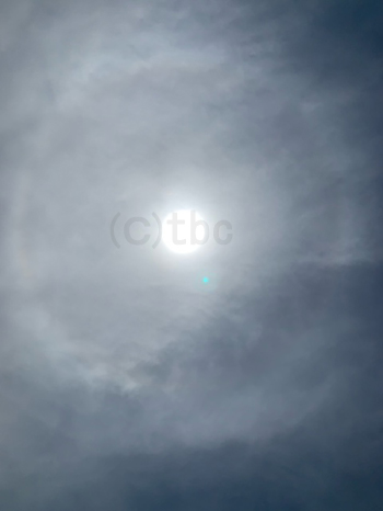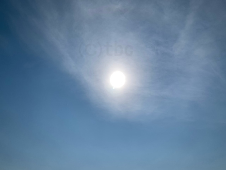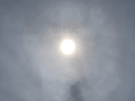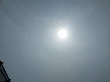 ぼんやり太陽も。気温は平年並みまで上がってきた。