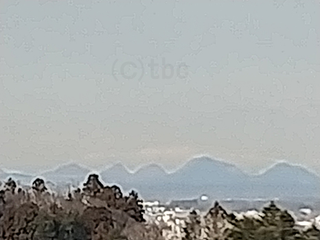 すっきり晴れたが、風でチリが舞い上がっているのか、なんとなく白っぽい空。