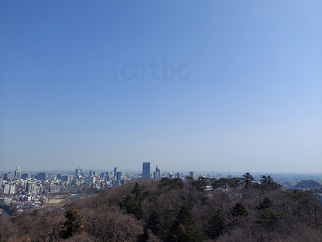 山の方までくっきり見通せる。山はまだまだ雪の白さが目立つ。