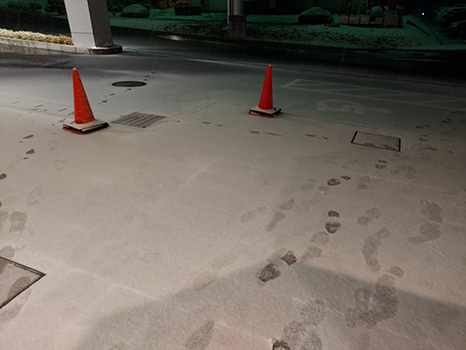 夜は本格的な雪となり、午後7時過ぎには路面にも積もり始めた。