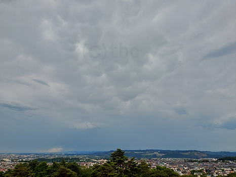 南西の空には、「乳房雲」だろうか?底がポコポコと膨らんでいる雲が見られる。