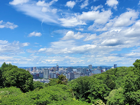 朝から急速に晴れ、午前9時前には早々と真夏日になった仙台市内。