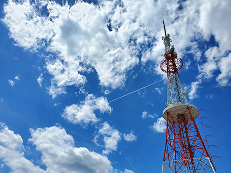 低い雲に覆われているが、雲底は極端に低くはなく、鉄塔はてっぺんまではっきり見えている。