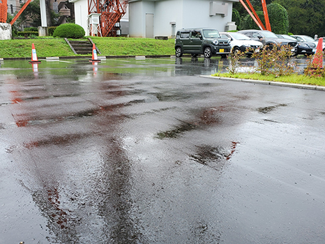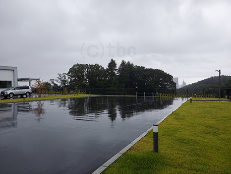 霧雨が降ってきた。路面はびっしょり。
