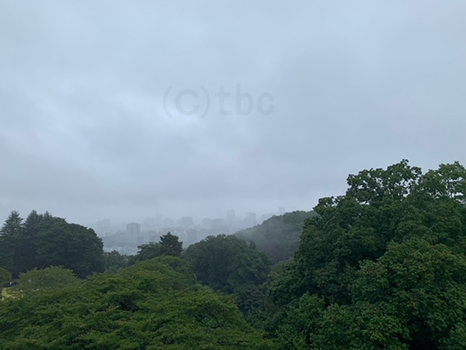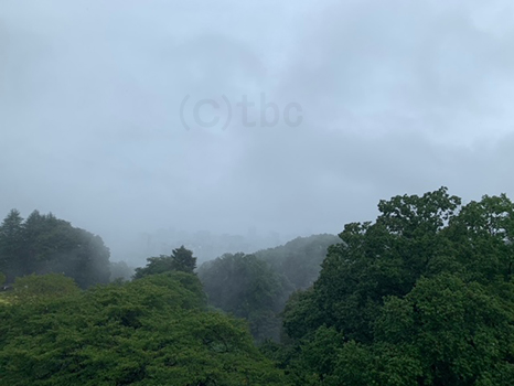 湿った東風の影響で、空全体が雲に覆われてどんより。