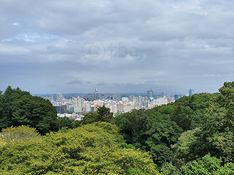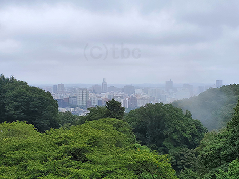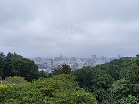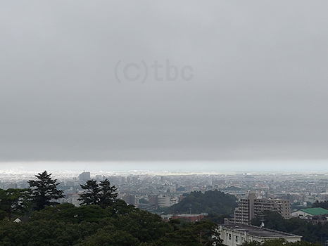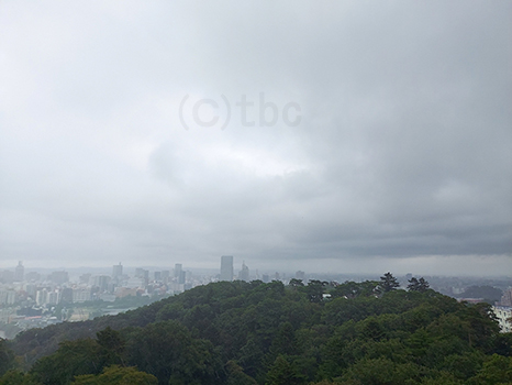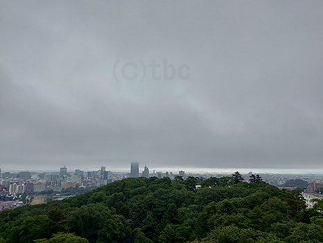 仙台市内上空は湿った空気の影響で見通しが悪い。