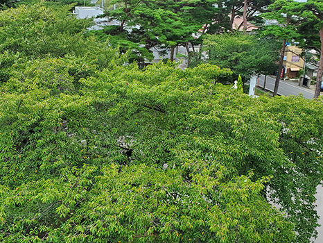 南よりの風がやや強く、木の枝が時折、大きく揺れていた。