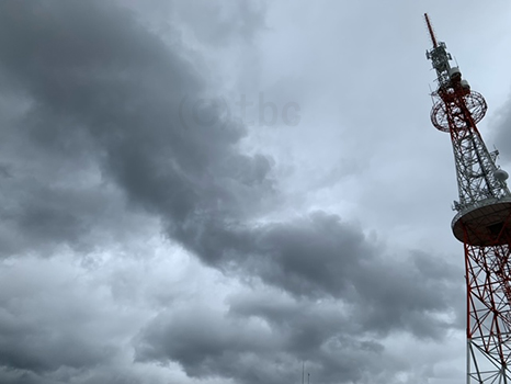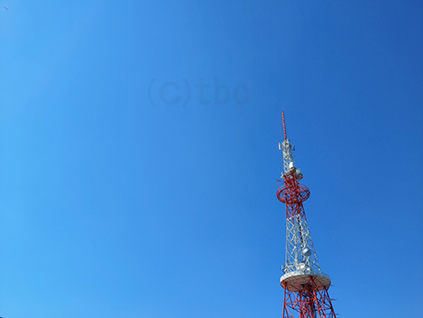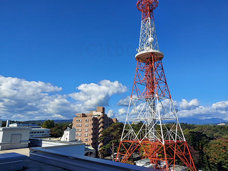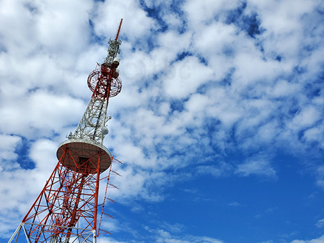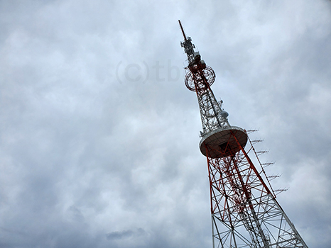 鉄塔の上にはモコモコとした羊雲が見られた。