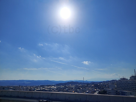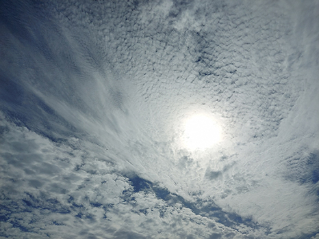 うろこ雲など上空の高い所の雲を通して日差しが届いている。