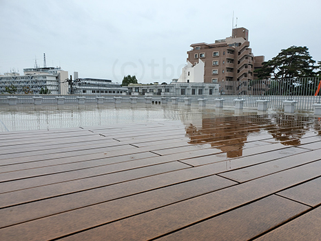 tbc構内は水たまりこそできないものの、路面がしっとりと濡れている。