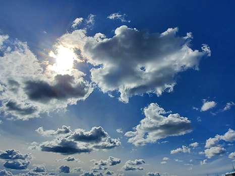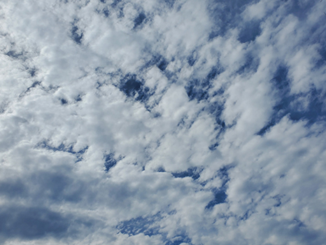 青空にポコポコと積雲が浮かぶ空。ようやくこの時季らしい暖かさが戻ってきた。