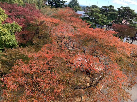 サクラの葉が紅葉し、色鮮やかになってきた。