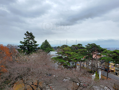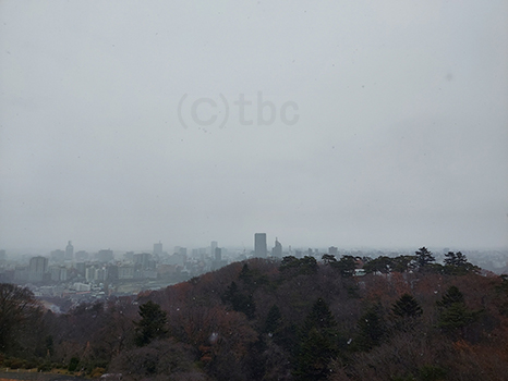 昼過ぎの仙台市内。雨が降り出すとみていたが、八木山では粒の細かい雪となった。