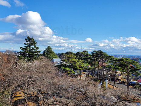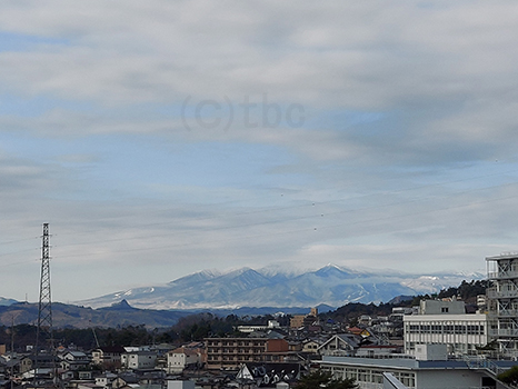 朝は晴れ間もあり、雪の積もった蔵王がはっきりと見えた。