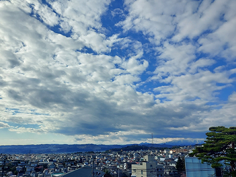 北部を中心に雨雲がかかっている所もあるが、八木山上空は青空。