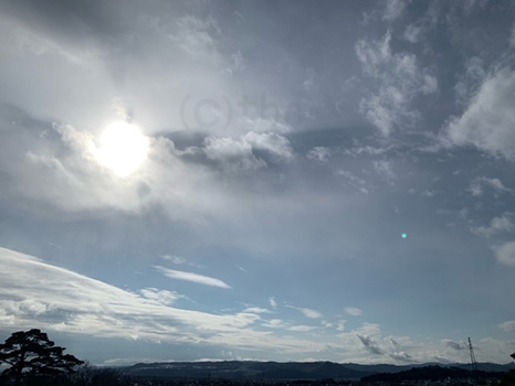 晴れ間もあるが、寒気の影響で雲が多く、ごく弱い雪がちらつく。
