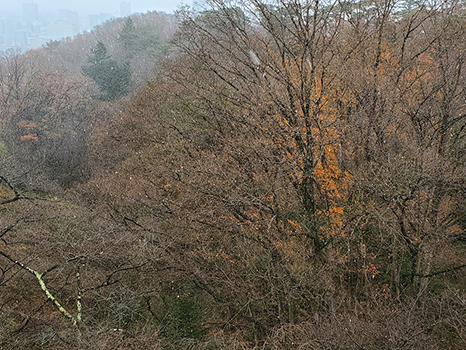 風が強まって、木々の枝が時おり大きく揺れていた。