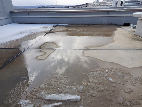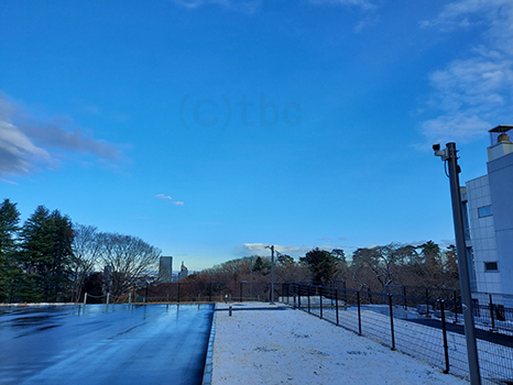 気温はきのうまでより若干高くなり、屋上の雪も解けかかっている。