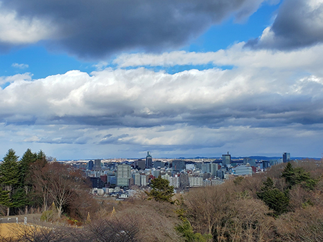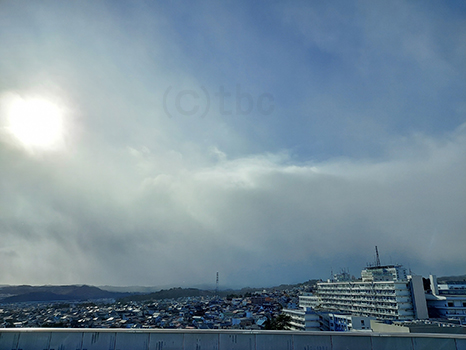 けさ、仙台で初雪を観測。日中は次第に青空が広がった。