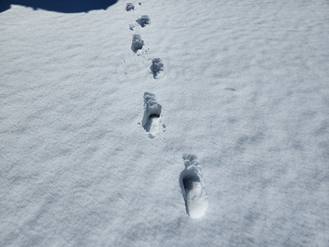 日なたでも手付かずの場所の雪はすぐには減らず。