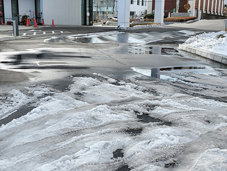 雪解け水凍るおそれ。引き続きスリップや転倒に注意が必要だ。