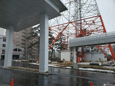 昼過ぎに取材で訪れた仙台管区気象台周辺は小雪が舞っていた。