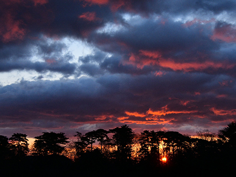 早朝は低い雲が多く、鮮やかな朝焼けが見られた。