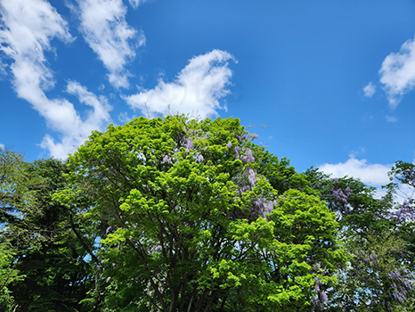 日差したっぷり!空も新緑もきれい。