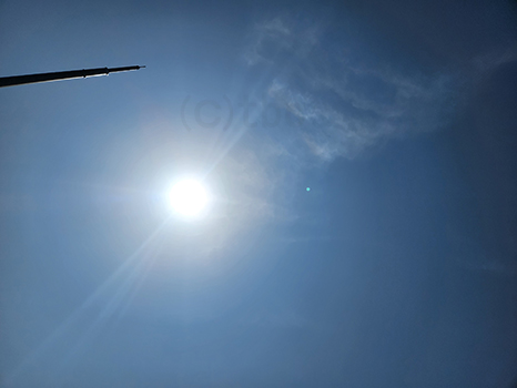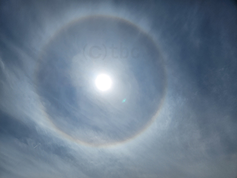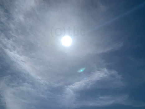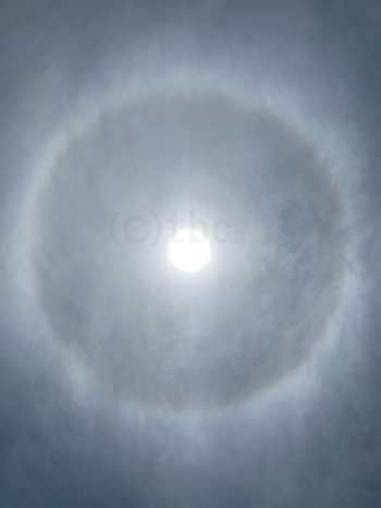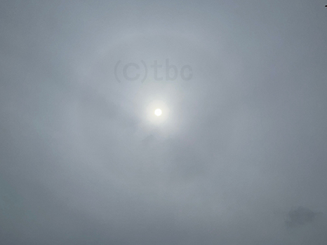 日暈(ハロ)を確認。少し低い所の薄い雲にも覆われて、日陰ができないくらい曇ってきた。