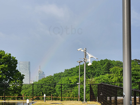 午後5時過ぎには一瞬日差しが出て、東の空に虹が現れた。